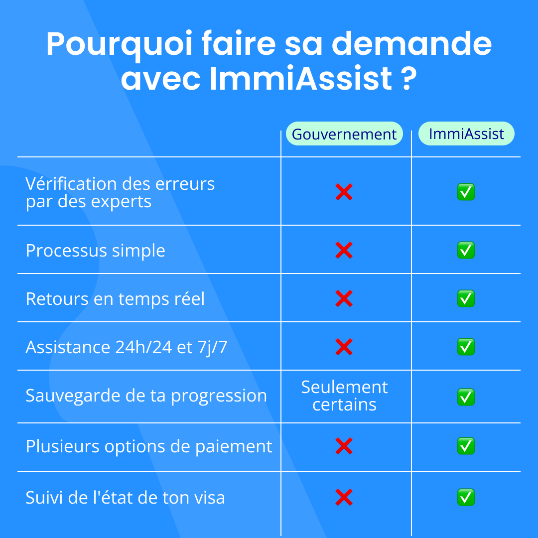 Quand tu fais ta demande via un portail officiel, tu es livré à toi-même dès que tu cliques sur envoyer. Avec ImmiAssist, ce n'est pas le cas.