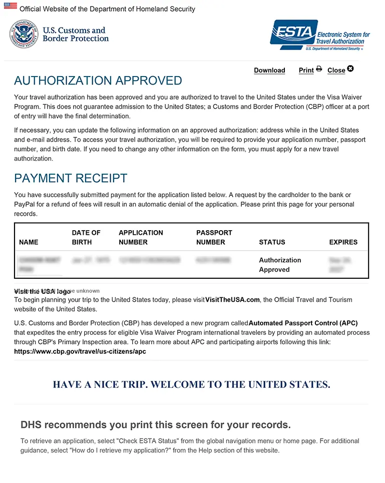 美國會根據旅客的國籍與訪問目的提供多種入境方式。部分國家的公民可符合免簽計畫(Visa Waiver Program, VWP)資格,無需取得傳統簽證即可進行最長 90 天的觀光或商務訪問。要使用 VWP,旅客必須在出發前於線上提交 ESTA(電子旅行授權系統)申請。ESTA 通常有效期為兩年,或直至旅客護照到期,以較早者為準。