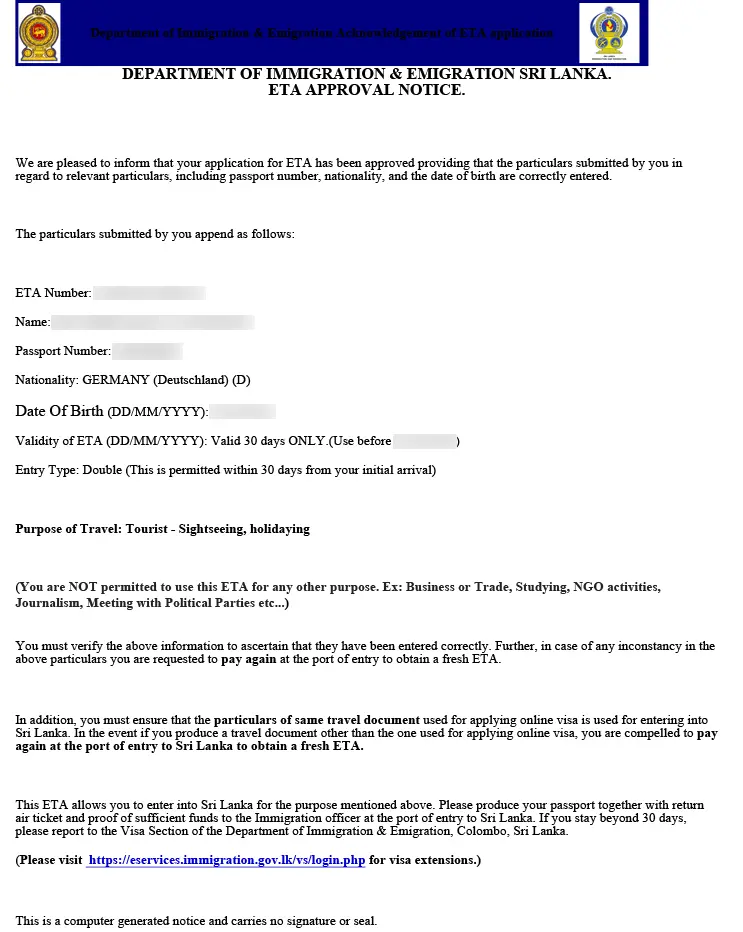 斯里兰卡要求大多数国际旅客在抵达前获得电子旅行授权(ETA)。
